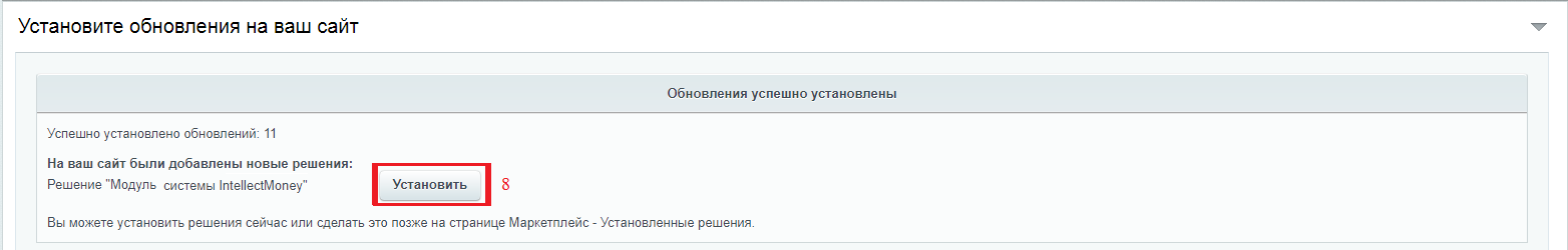 В личном кабинете на сайте IntellectMoney в настройках магазина в поле ResultURL укажите http://xxx.ru/bitrix/tools/im.payment/result.php** где xxx.ru -адрес сайта