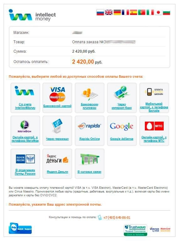Если вас перенесло на сайт оплаты систему intellectmoney.ru (рис. 4), это означает, что всё работает.