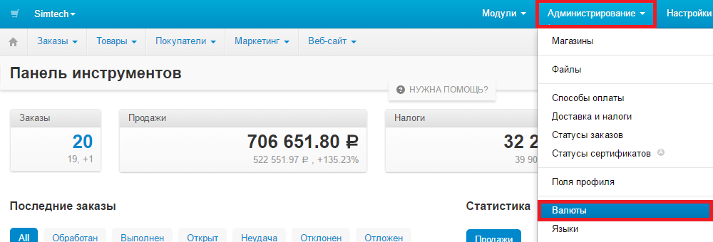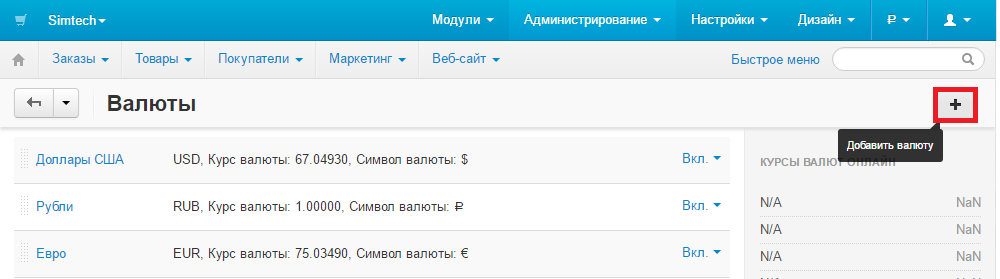 - В админке перейти Администирование-Валюты