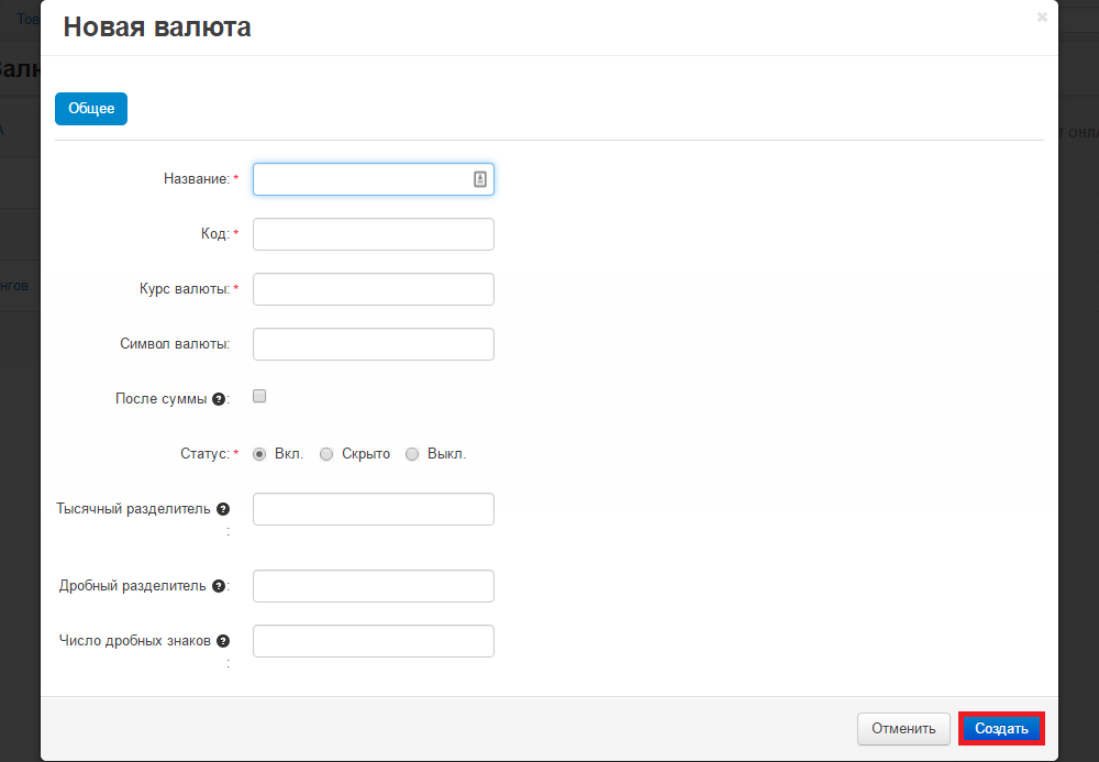 Если требуется создать валюту то: