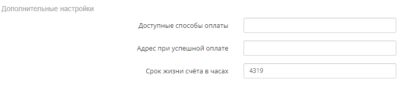 Срок жизни счета в часах: задает время за которое счет можно оплатить; по истечению этого срока счет автоматически отменяется и не доступен для оплаты.