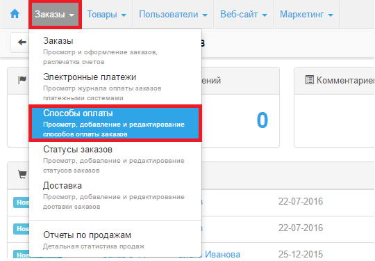 В админке phpshop выбираем Заказы -> Способы оплаты.