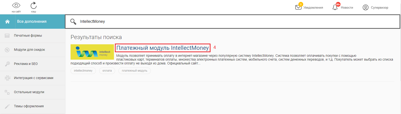 Перейдите по ссылке "Платежный модуль IntellectMoney"