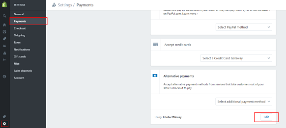 Настройки платёжного метода можно изменять на вкладке: Settings->Payments->Alternative payments->Edit(напротив IntellctMoney)