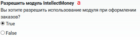 *Разрешить модуль IntellectMoney - включение модуля на странице оформления счета