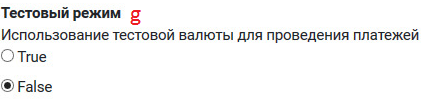 g. Тестовый режим - использование тестовой валюты для проведения платежей