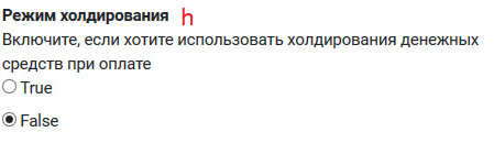 h. Режим холдирования - включите, если хотите использовать холдирования денежных средств при оплате