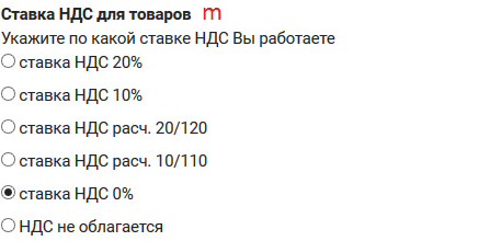 m. Ставка НДС для товаров - укажите по какой ставке НДС Вы работаете (Обязательно при использовании онлайн-кассы)