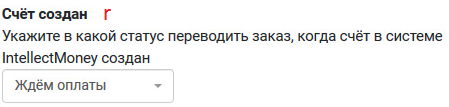 r. Счёт создан - укажите в какой статус переводить заказ, когда счёт в системе IntellectMoney создан