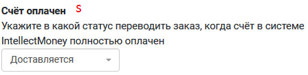 s. Счёт оплачен - укажите в какой статус переводить заказ, когда счёт в системе IntellectMoney полностью оплачен