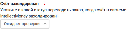 t. Счёт захолдирован - укажите в какой статус переводить заказ, когда счёт в системе IntellectMoney захолдирован