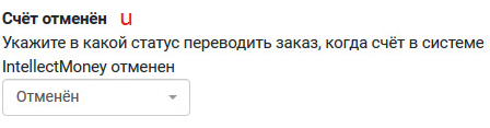 u. Счёт отменён - укажите в какой статус переводить заказ, когда счёт в системе IntellectMoney отменен