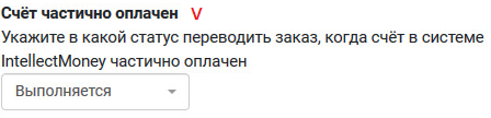 v. Счёт частично оплачен - укажите в какой статус переводить заказ, когда счёт в системе IntellectMoney частично оплачен