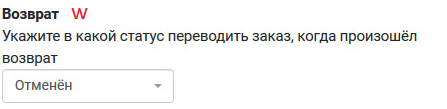 w. Возврат - укажите в какой статус переводить заказ, когда произошёл возврат