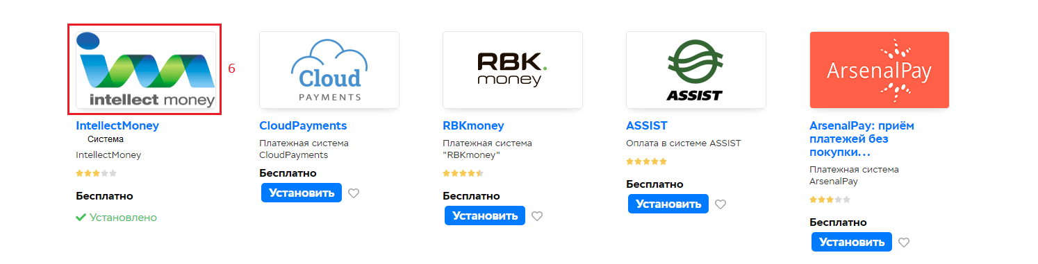 В списке платежных систем найдите IntellectMoney и нажмите на иконку
